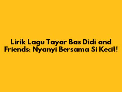 Oke, guys, ini dia yang kalian tunggu-tunggu! Lirik lengkap dari lagu "Tayar Bas" Didi and Friends. Siapin suara kalian dan ajak si kecil untuk bernyanyi bersama ya!
